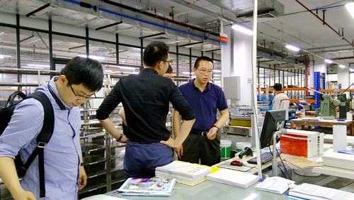 2018年4月12日,中國印刷技術(shù)研究院-數(shù)字印刷事業(yè)部總經(jīng)理郭春濤一行四人來訪天意有福,在副總經(jīng)理董祖明的帶領(lǐng)下參觀了天意有福生產(chǎn)中心。隨后進(jìn)入會(huì)議室,雙方就數(shù)字印刷技術(shù)發(fā)展與行業(yè)合作展開了深入的交流。